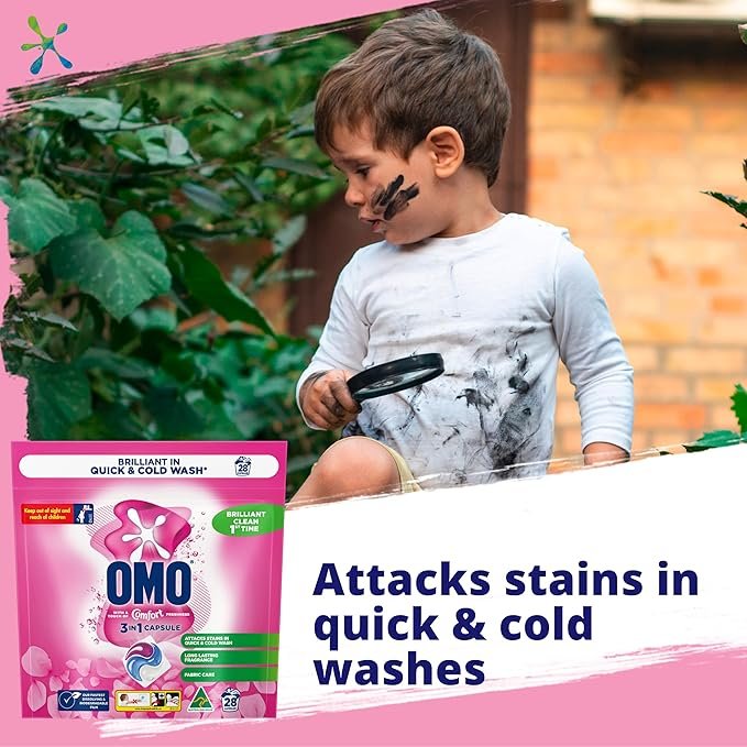 • OMO 3 in 1 Laundry Capsules with a touch of Comfort freshness provide a brilliant clean first time