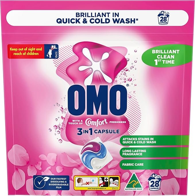 • OMO laundry capsules with a touch of Comfort freshness keep clothes smelling great for longer