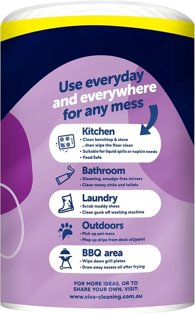 A versatile, fast-absorbing paper towel which helps you deal with mess quickly and effectively. Use Viva everyday and everywhere for any mess!